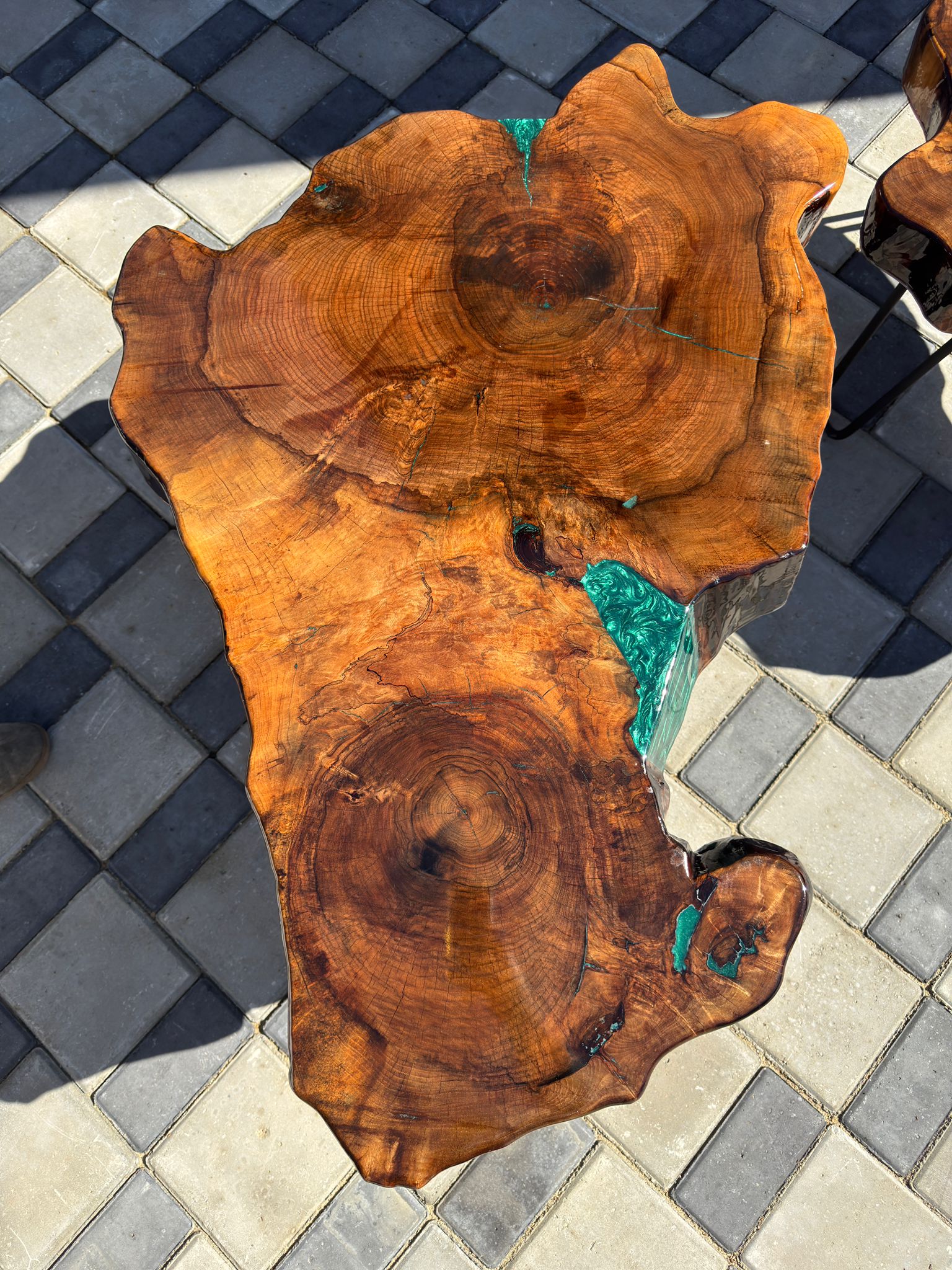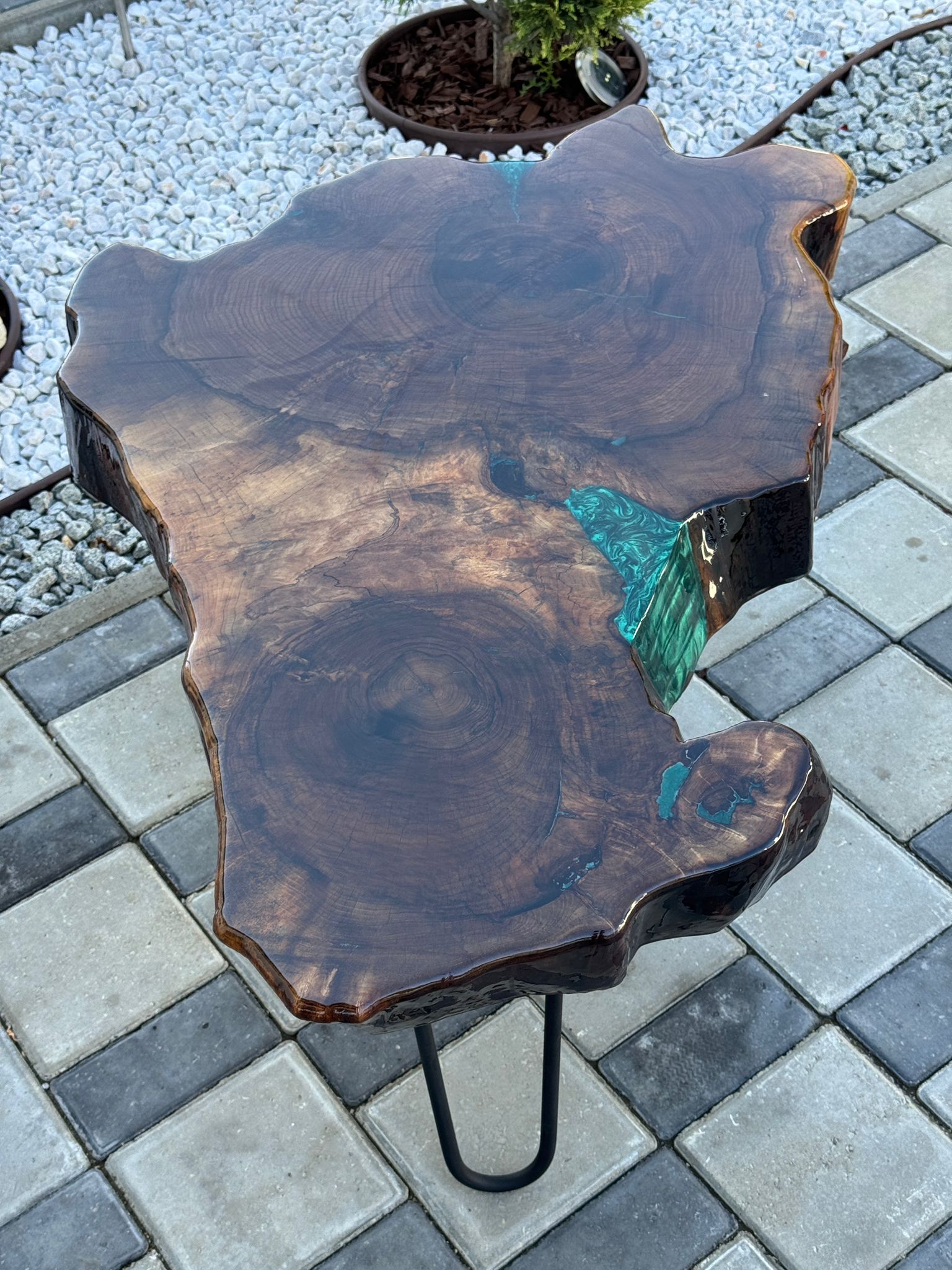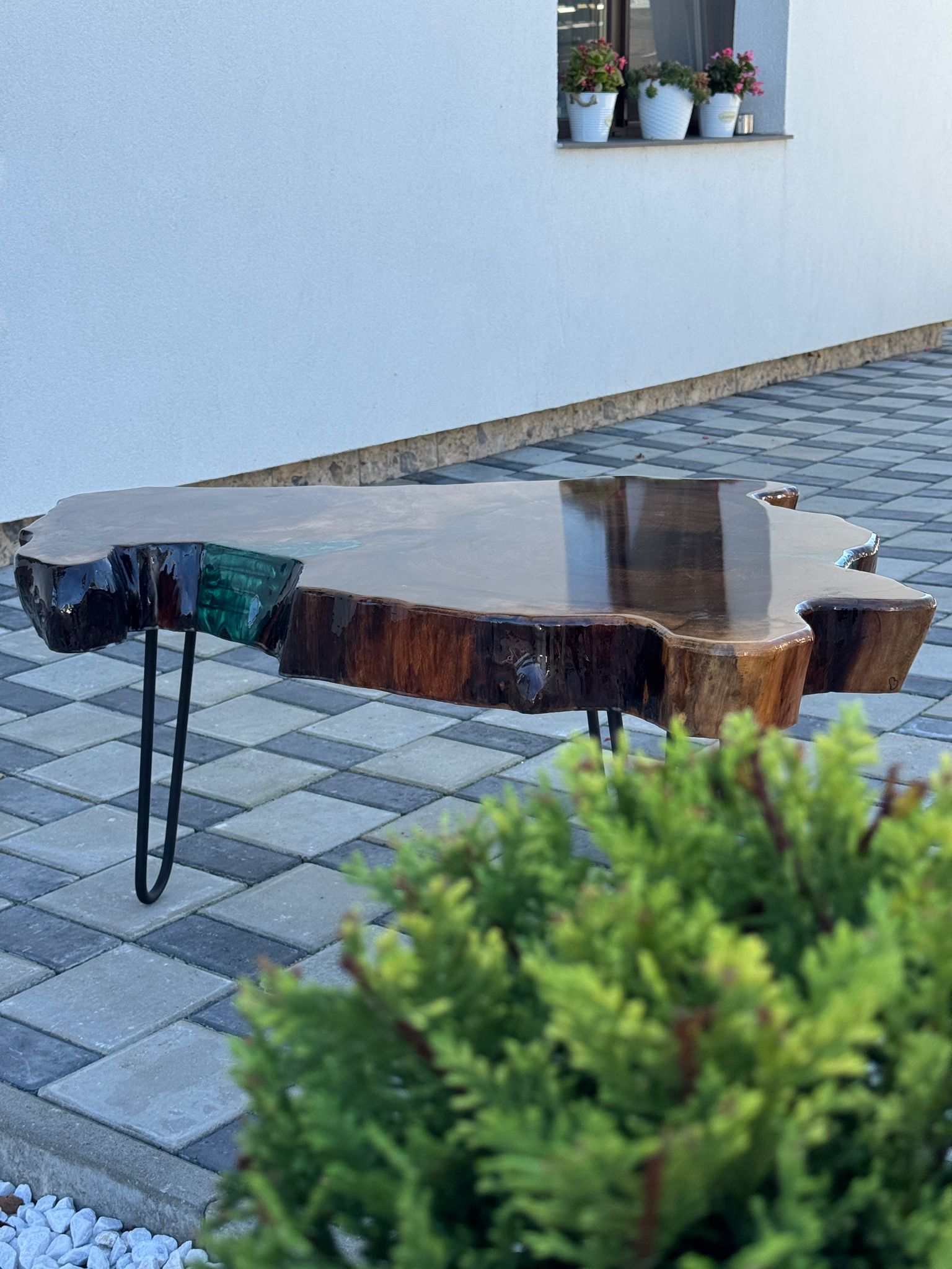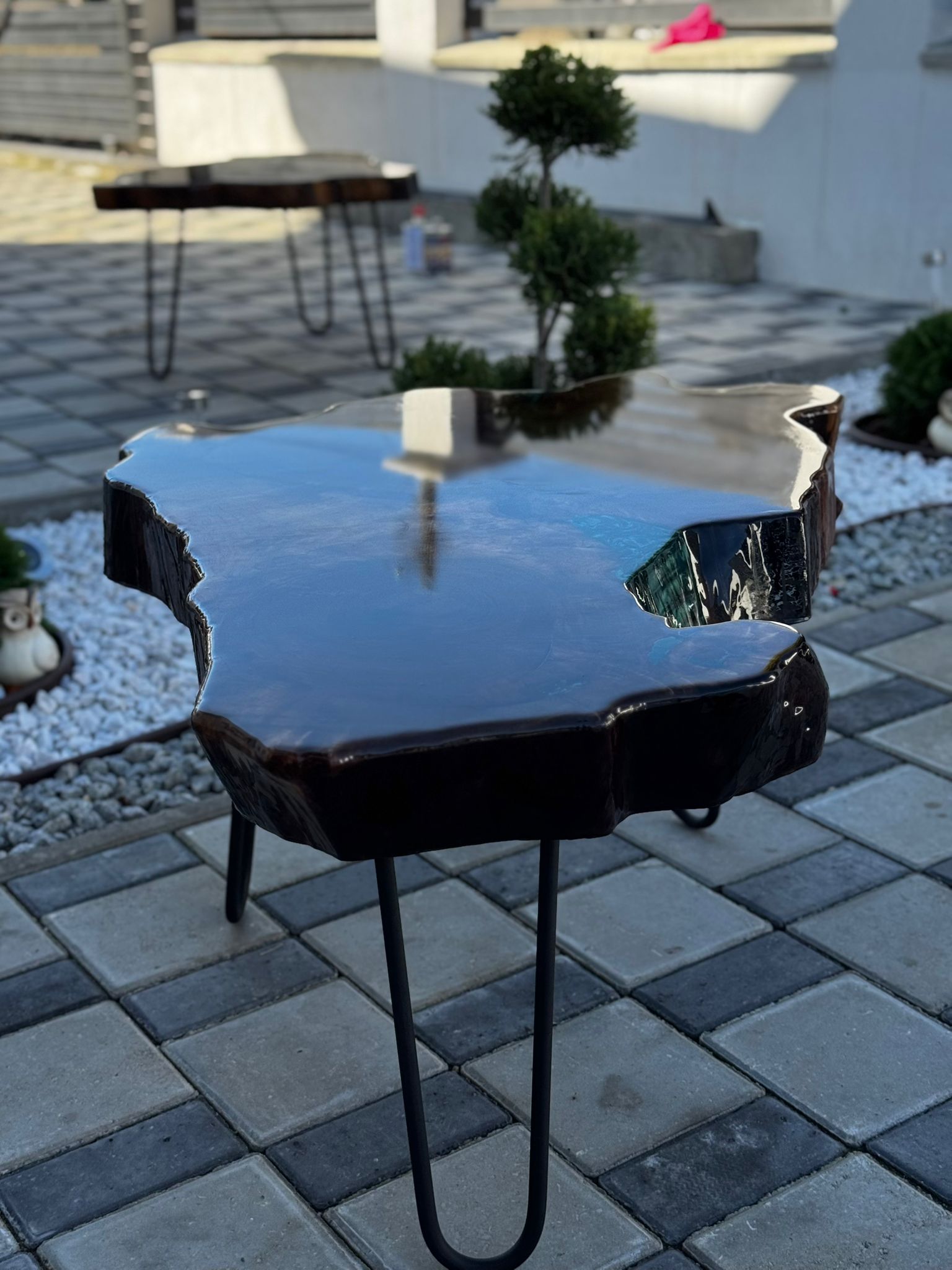 Fiecare masă este atent slefuită și lustruită pentru a scoate în evidență textura naturală a lemnului și culorile vibrante ale rășinii. Designul modern și elegant se potrivește în orice decor, oferind un accent unic casei tale.