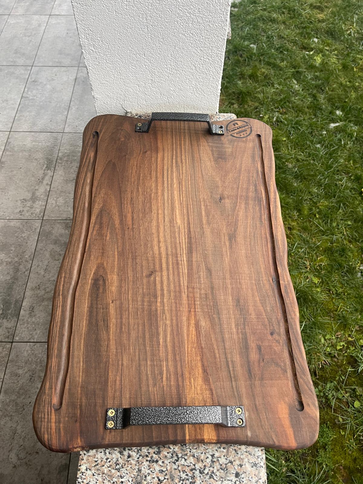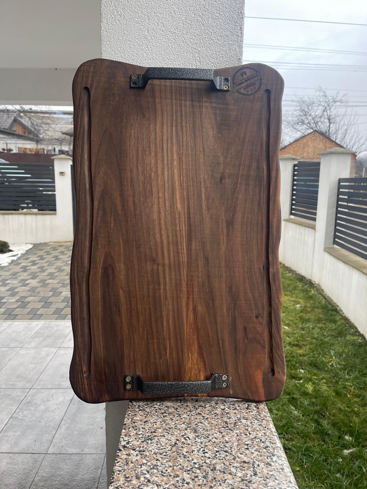 Designul său robust și finisajele atent realizate fac din acest platou o alegere excelentă atât pentru pasionații de gătit, cât și pentru cei care apreciază obiectele handmade din lemn natural.