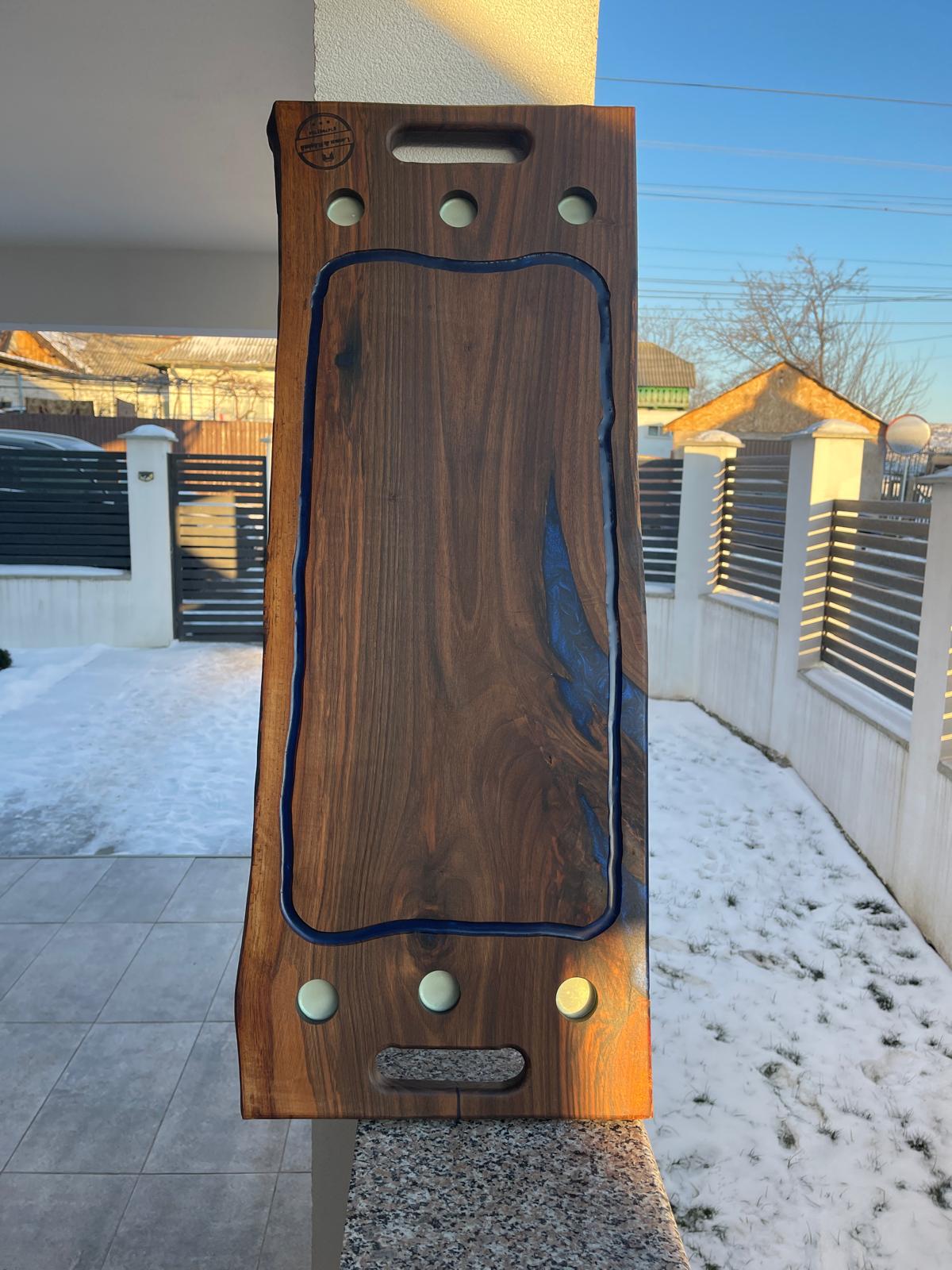 Cu dimensiunile impresionante de 90x35x3 cm, platoul oferă o suprafață generoasă pentru servire și prezentare, fiind o piesă statement în orice bucătărie sau zonă de dining. Este un produs handmade, unicat, care îmbină designul premium cu utilitatea practică.