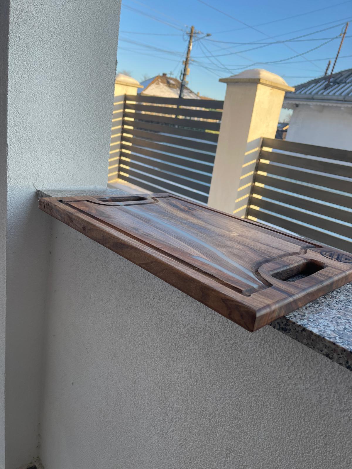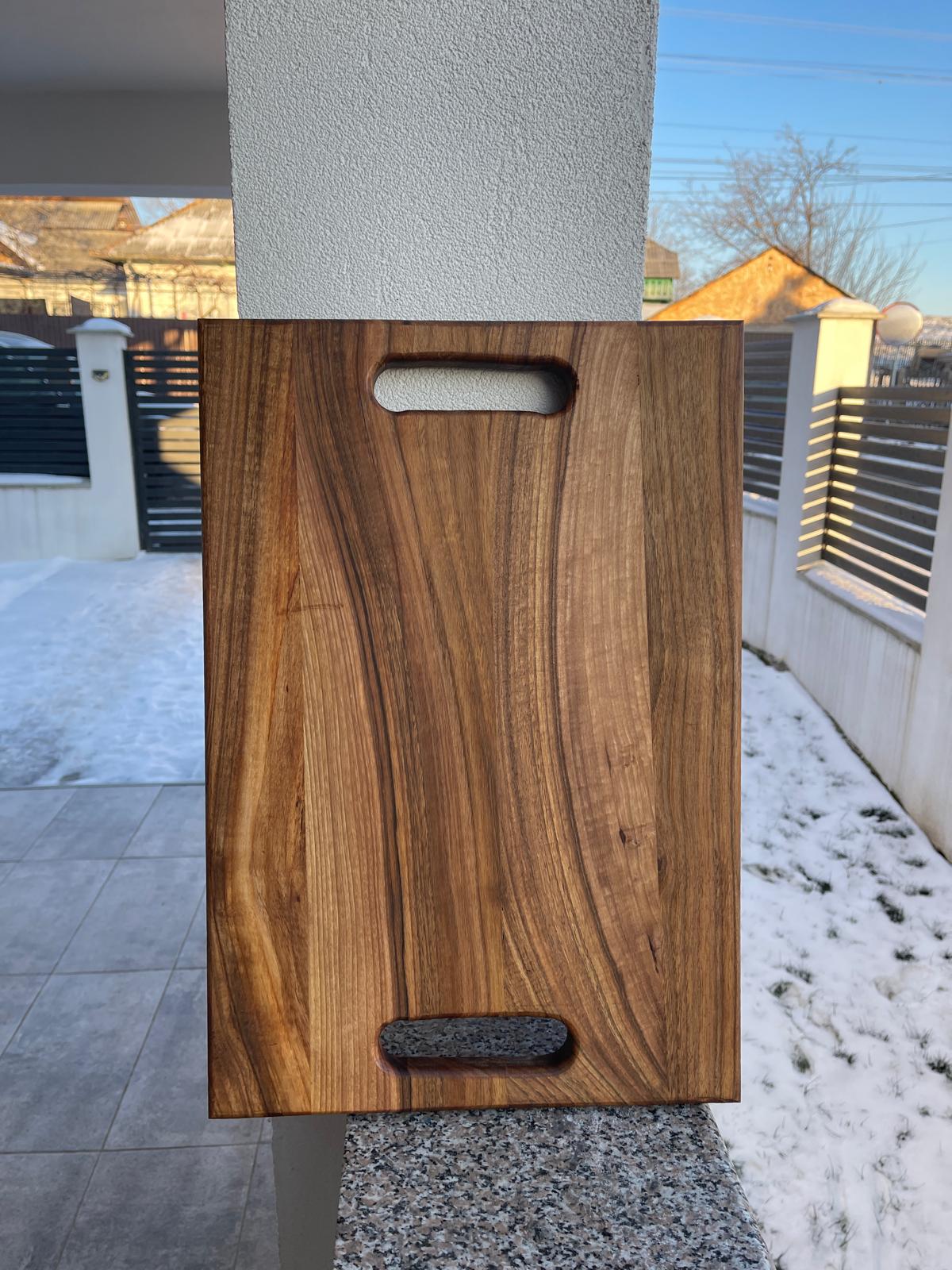 Cu dimensiunile de 50×35 cm, platoul oferă o suprafață generoasă pentru servire, prezentare sau tăiere, fiind un produs handmade, unicat, ideal pentru bucătării moderne, rustice sau pentru mese festive.