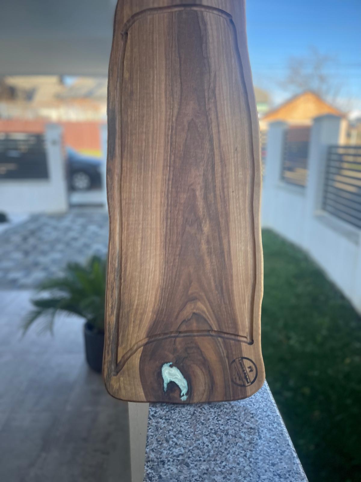 ✔ Materiale: Lemn de nuc, rășină epoxidică albă, fier forjat