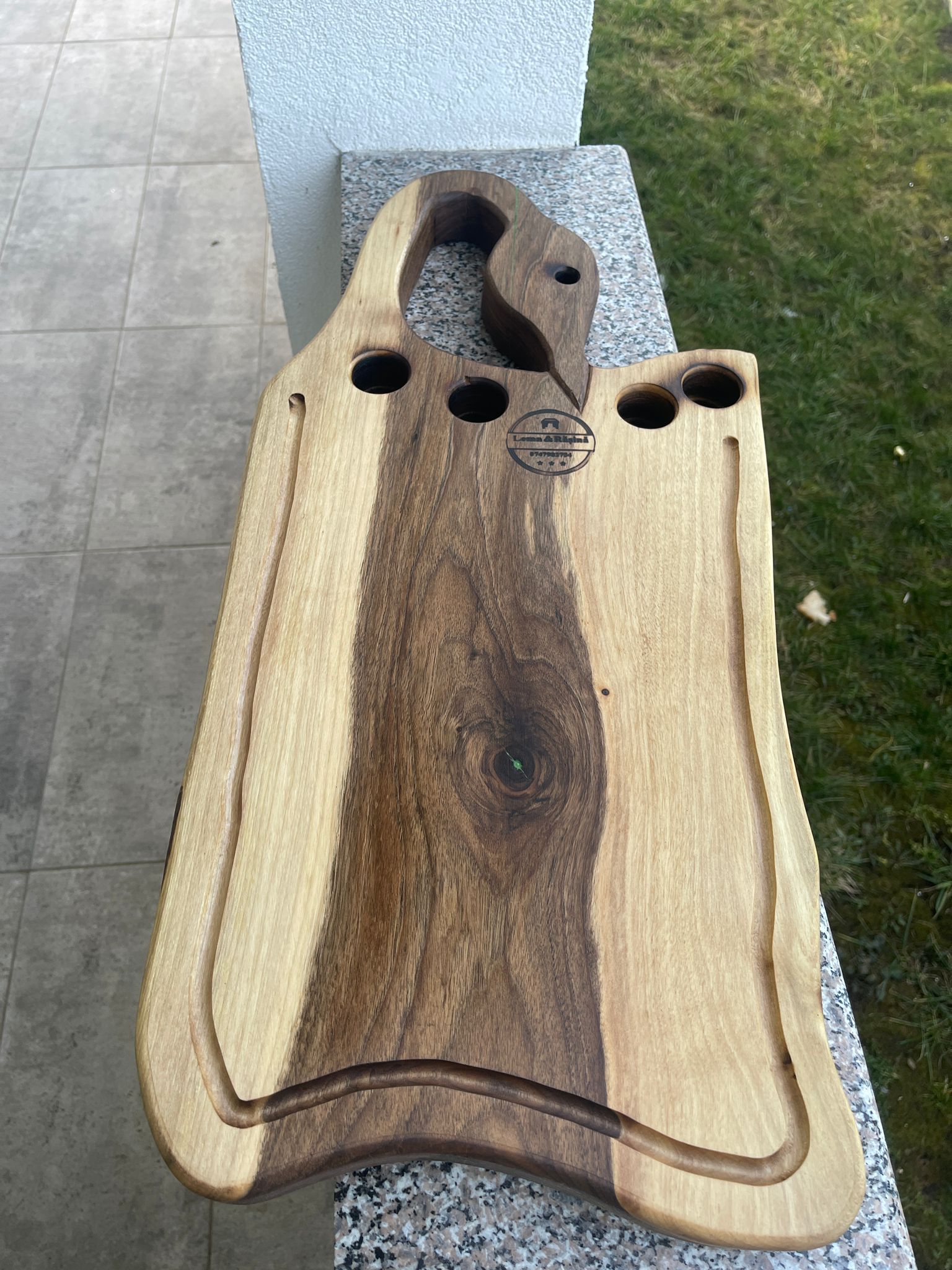 Realizat manual din lemn masiv, cu un design natural și elegant, este ideal pentru servirea preparatelor, dar și pentru momentele cu prietenii unde nu lipsesc shot-urile.