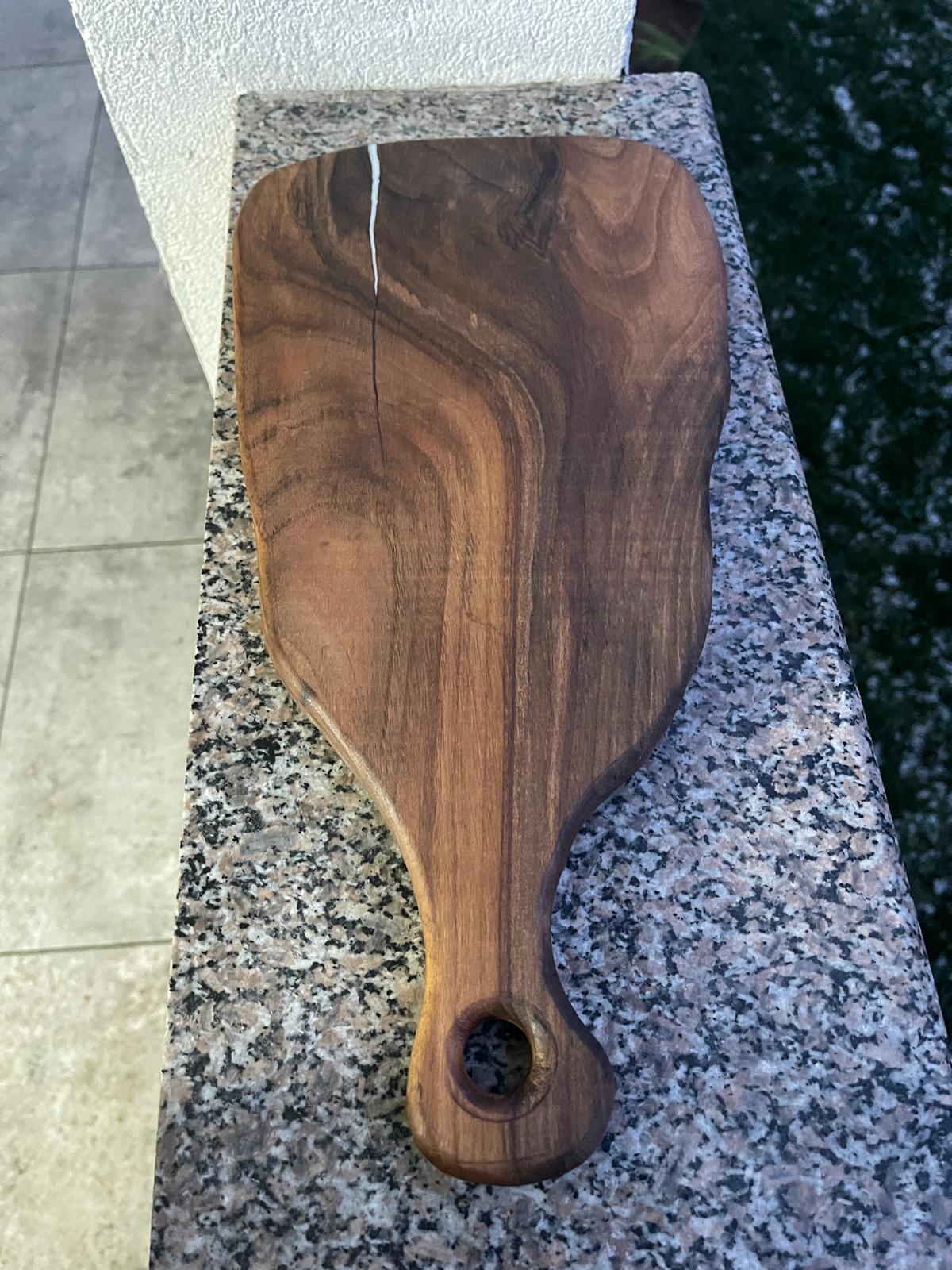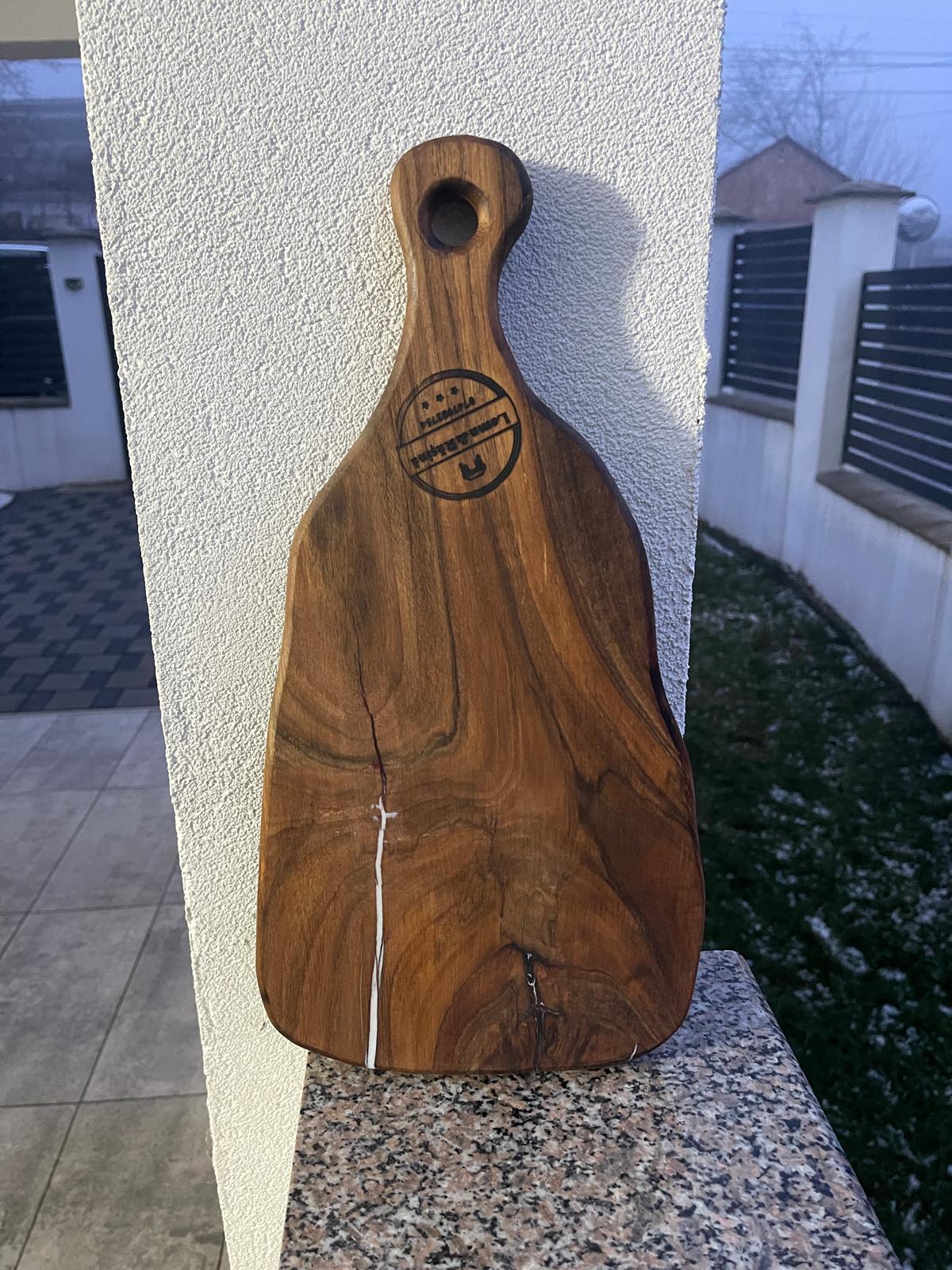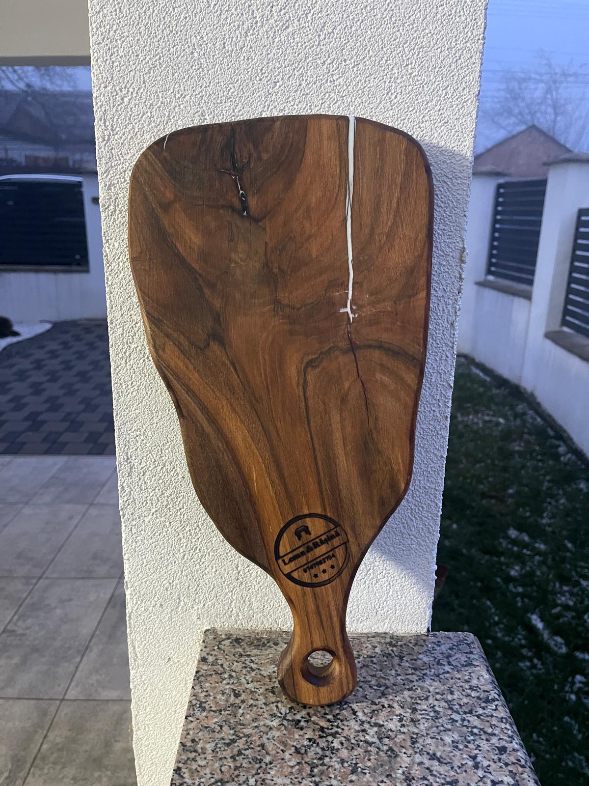 Acest tocător este ideal ca accesoriu practic, element decorativ sau cadou original pentru iubitorii produselor handmade din lemn și rășină.
