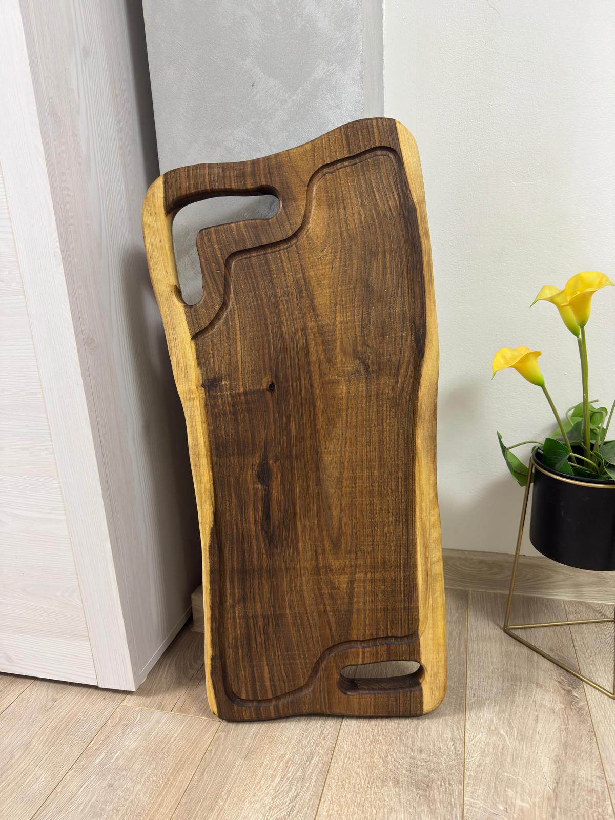 Cu dimensiuni generoase de 75x35x4 cm, acest model este ideal atât pentru utilizarea zilnică în bucătărie, cât și pentru servirea preparatelor în cadrul evenimentelor sau petrecerilor. Grosimea de 4 cm oferă stabilitate și rezistență, fiind potrivit pentru tranșarea cărnii și pregătirea preparatelor consistente.