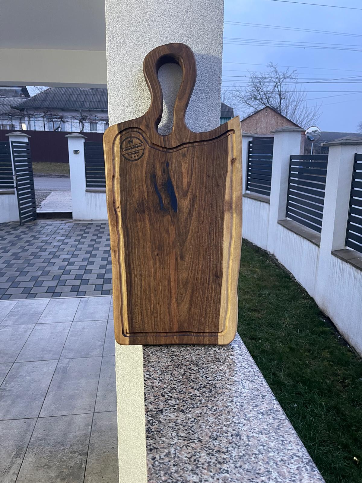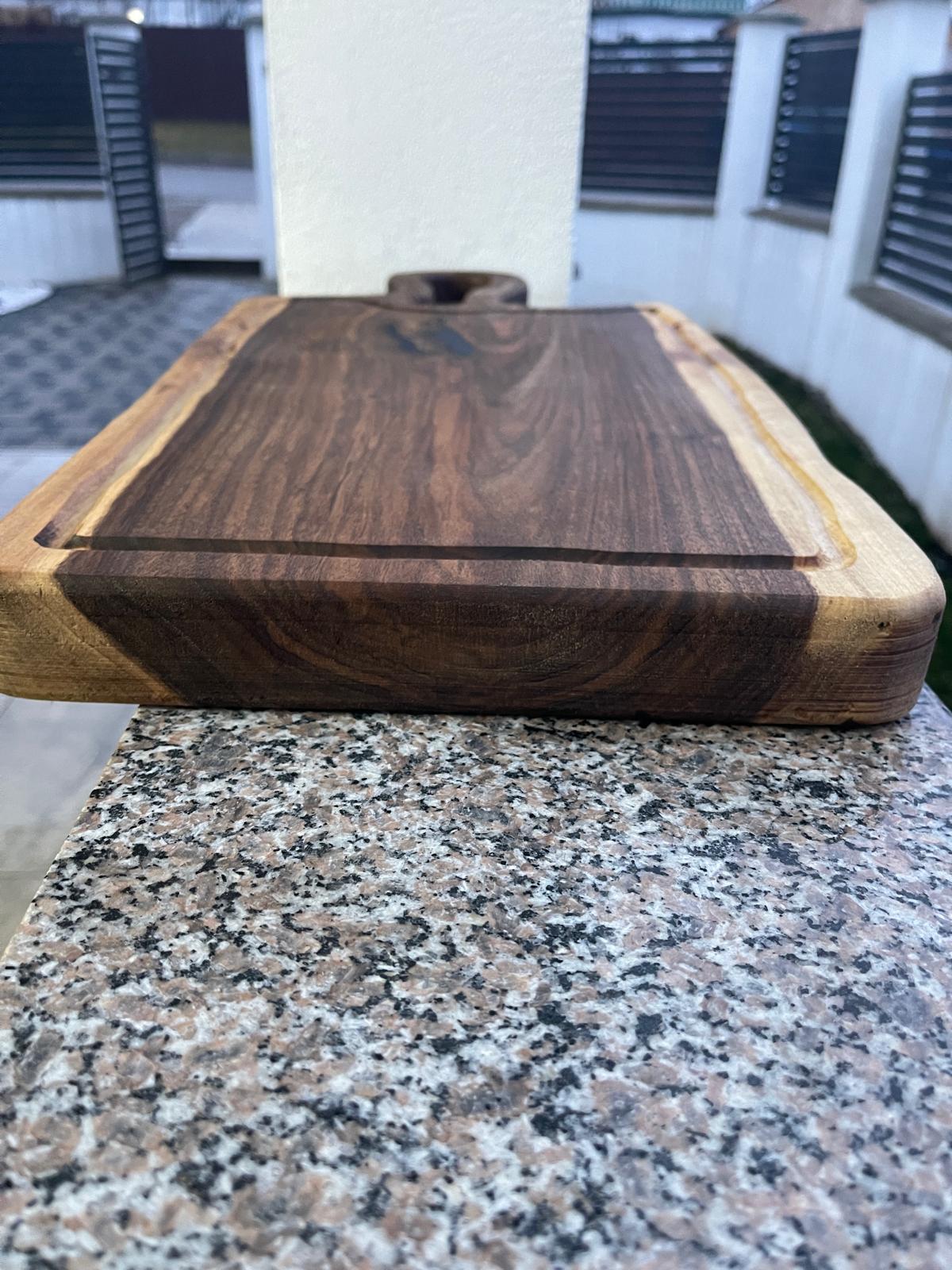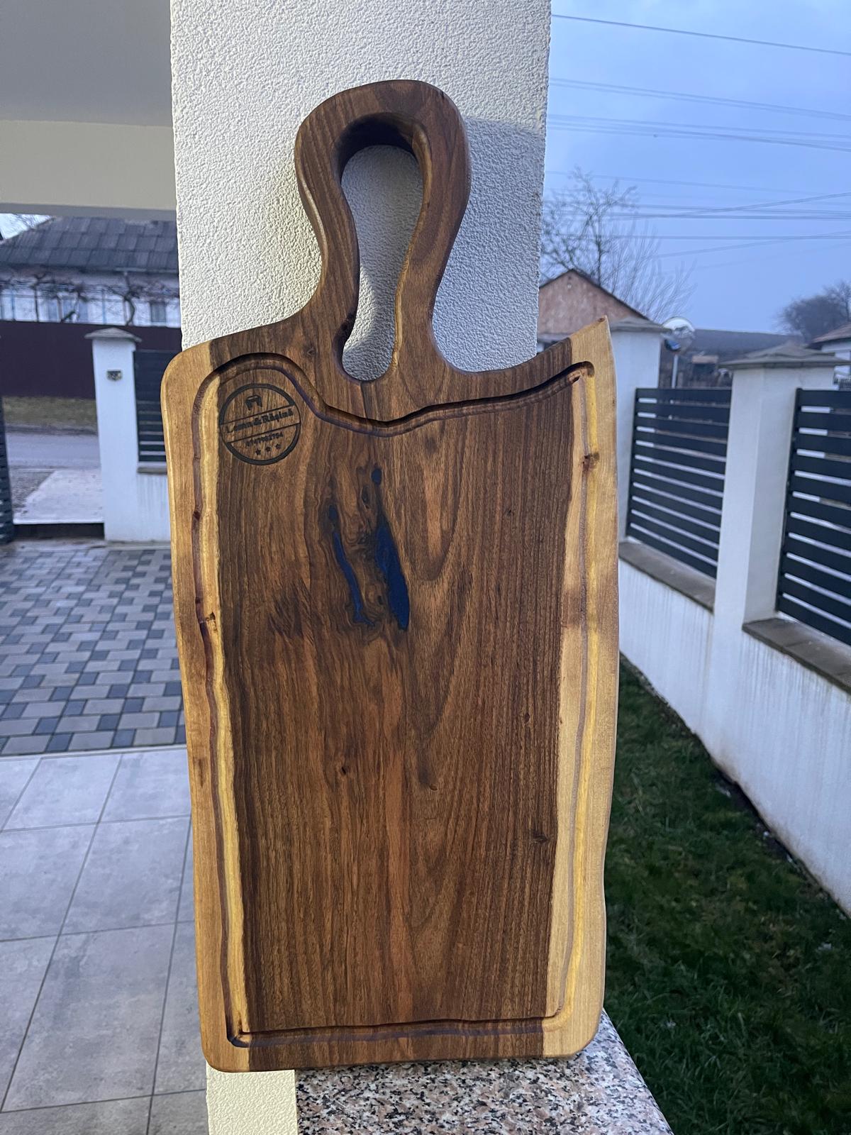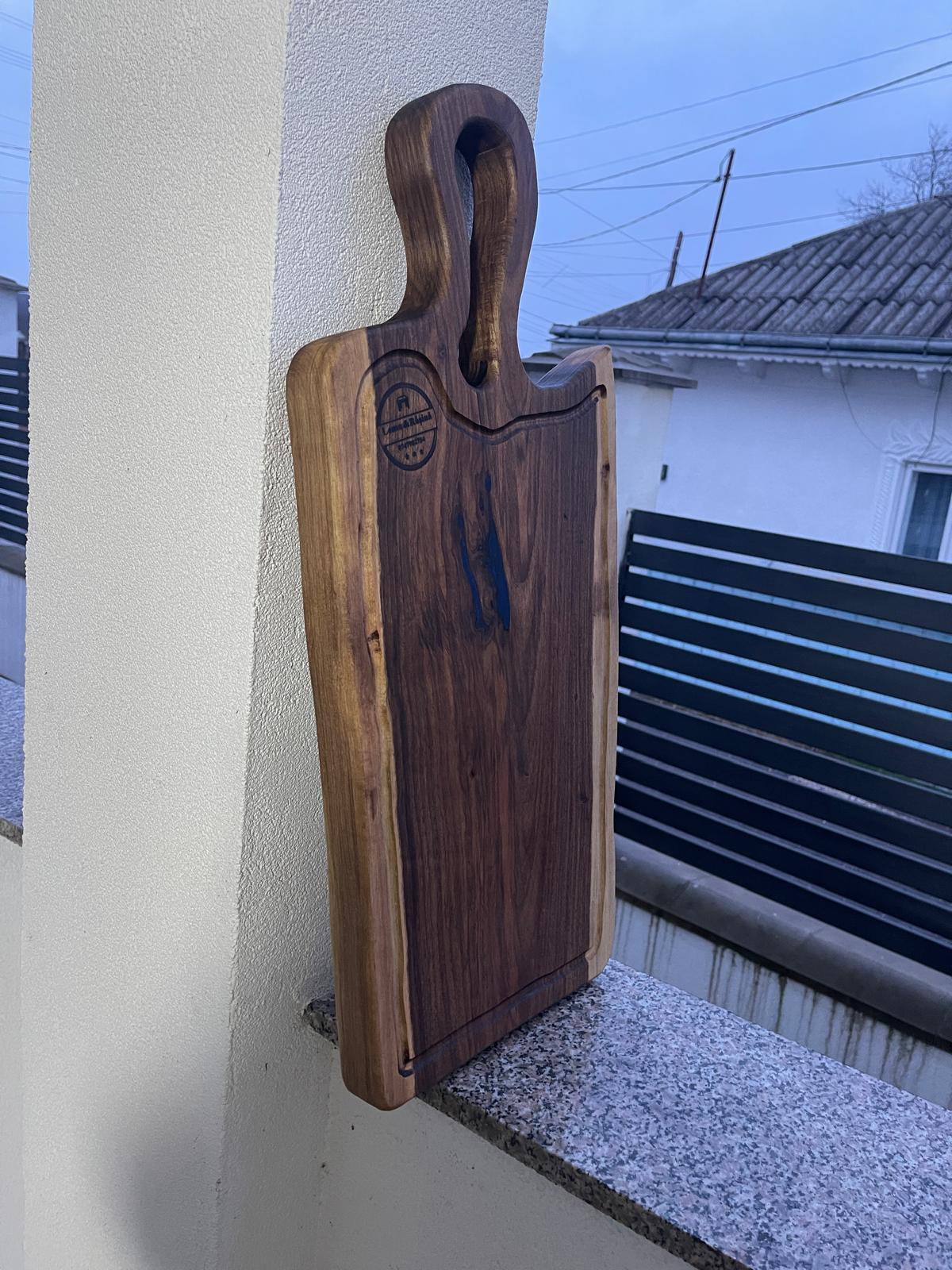 Fii primul care scrii o recenzie pentru „Tocător din lemn de nuc masiv cu rășină epoxidică albastră și scurgător de grăsimi, două fețe, 66x30x4 cm – Lemn & Rășină”