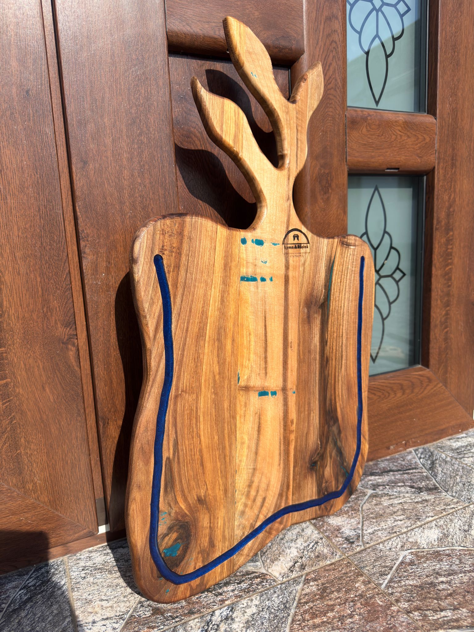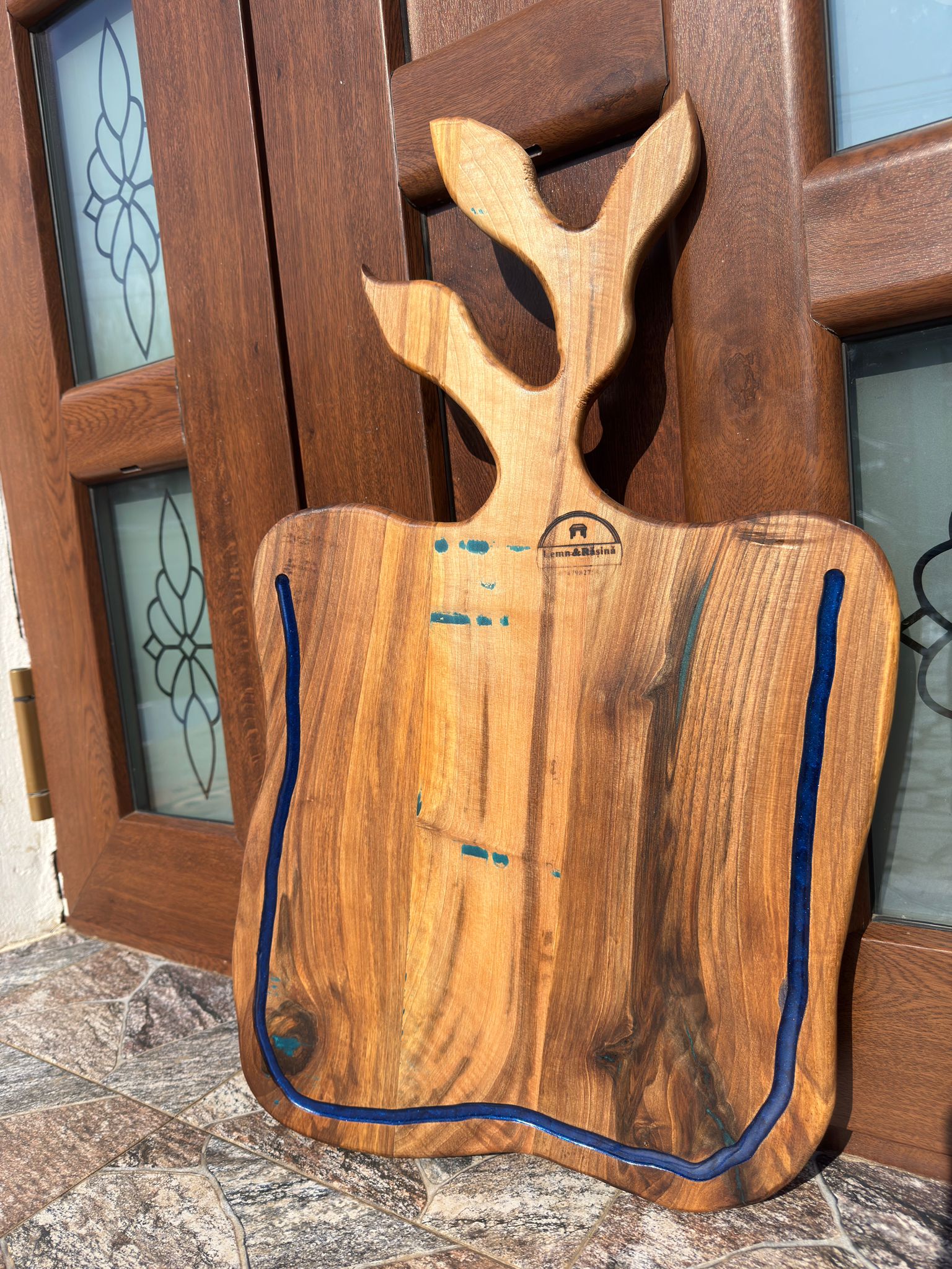 Material: lemn masiv de nuc + rășină epoxidică