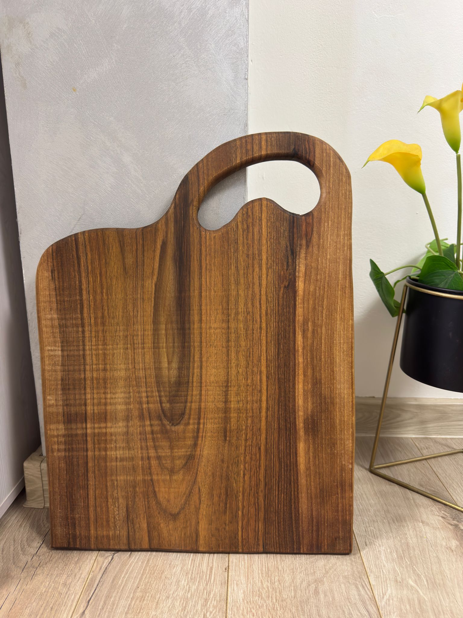 Tocător realizat manual din lemn masiv de nuc, dimensiuni 50x37x2 cm. Rezistent, elegant și ideal pentru utilizare zilnică în bucătărie sau pentru servirea preparatelor. Tratată cu ulei special sigur pentru contact alimentar.