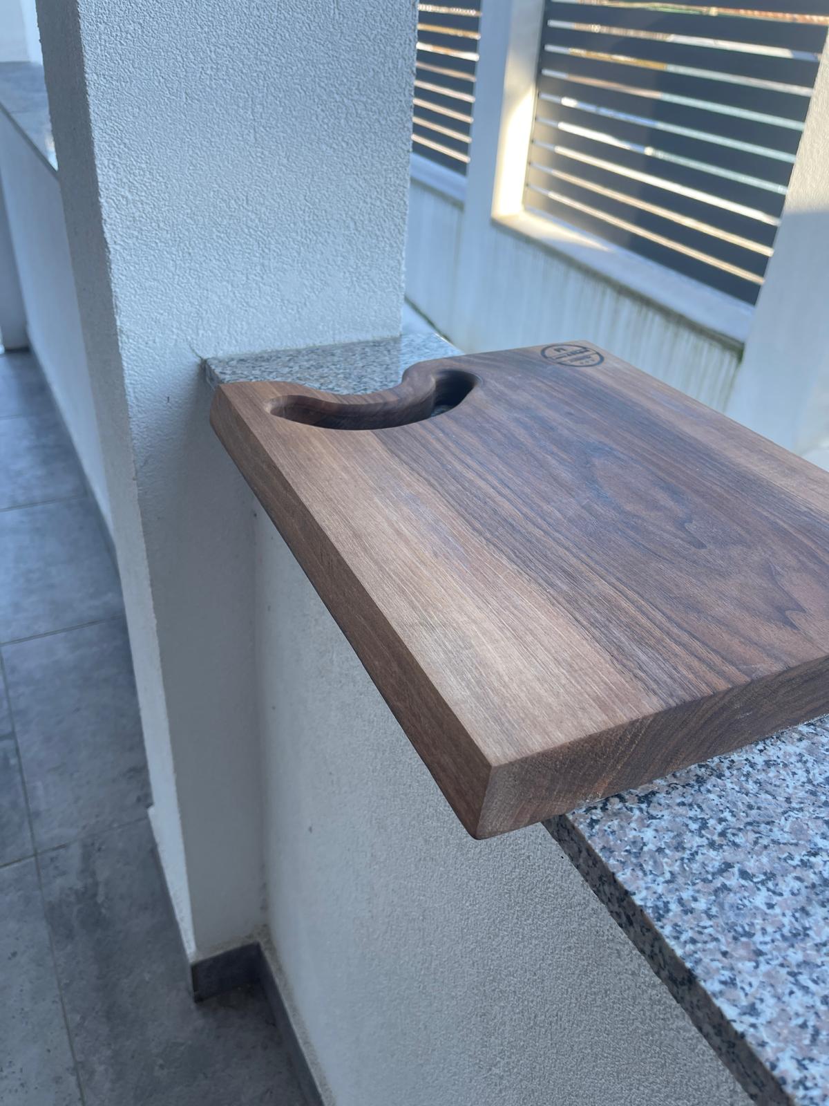 Tocător elegant din lemn de nuc masiv cu margini tăiate la 5° – 42x35x3,5 cm