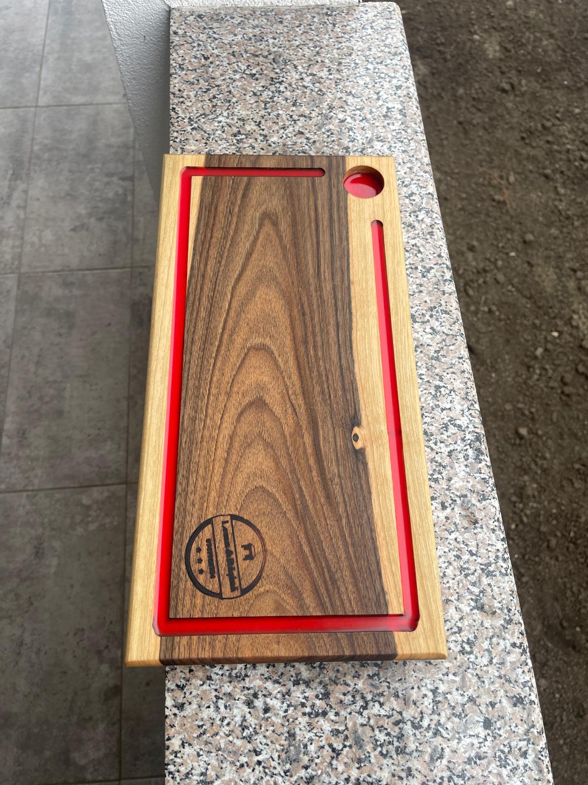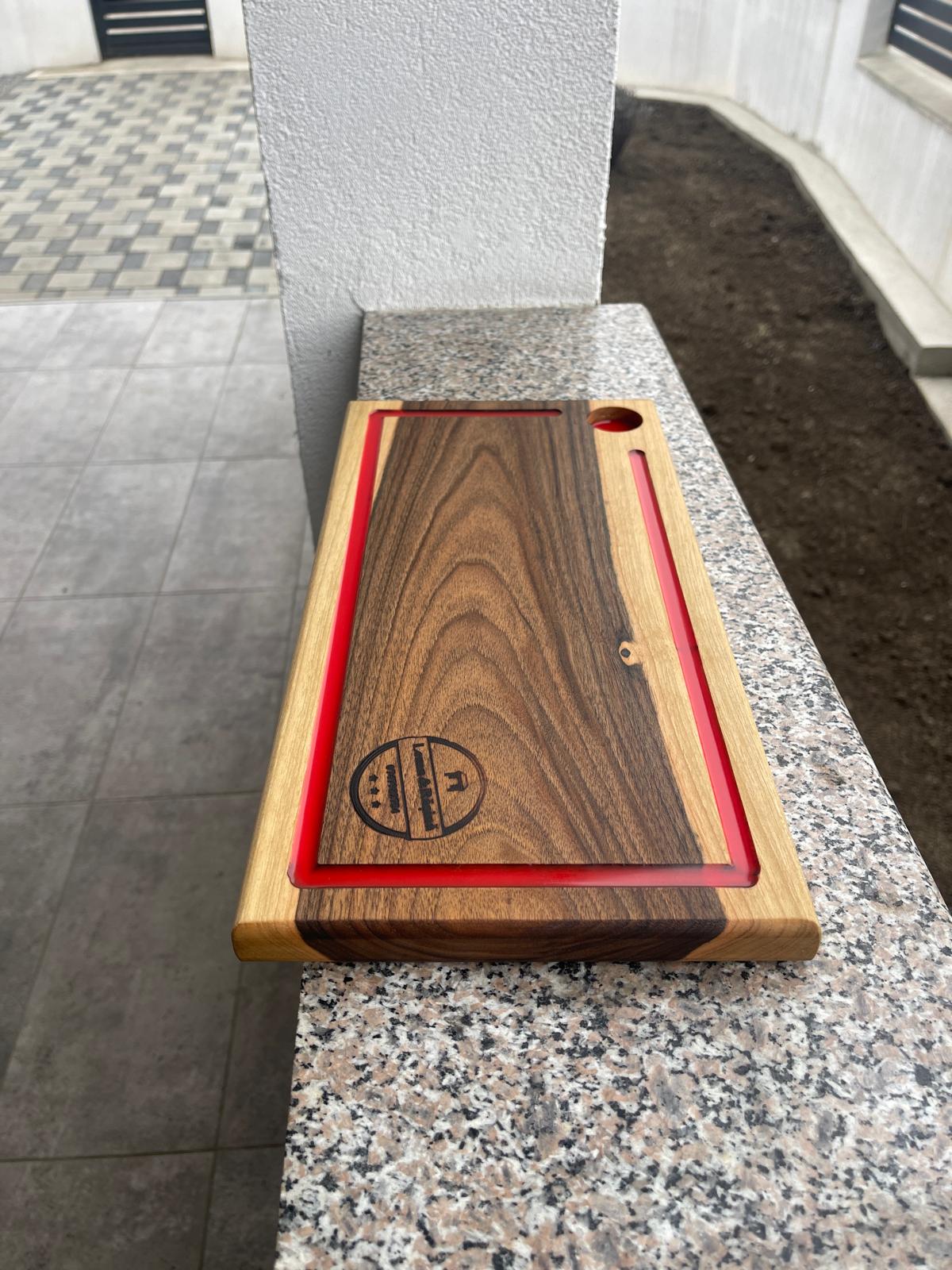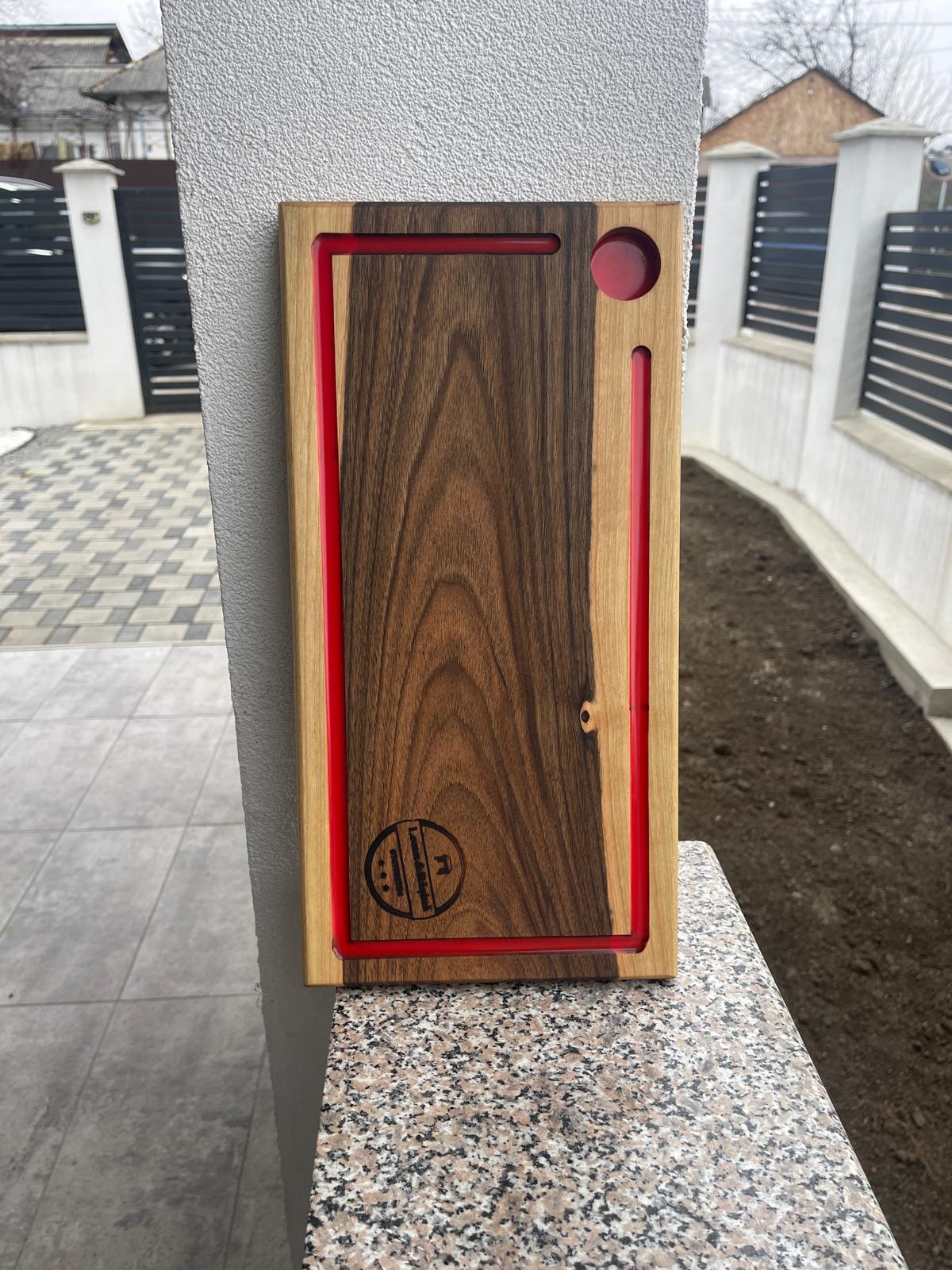 Inserția roșie oferă un contrast elegant și scoate în evidență fibra naturală a lemnului.
