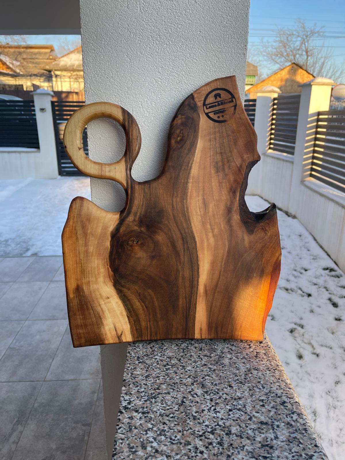 Cu dimensiunile de 40×35 cm, tocătorul oferă suficient spațiu pentru utilizare practică și prezentare elegantă, aducând un plus de autenticitate și stil rustic bucătăriei.
