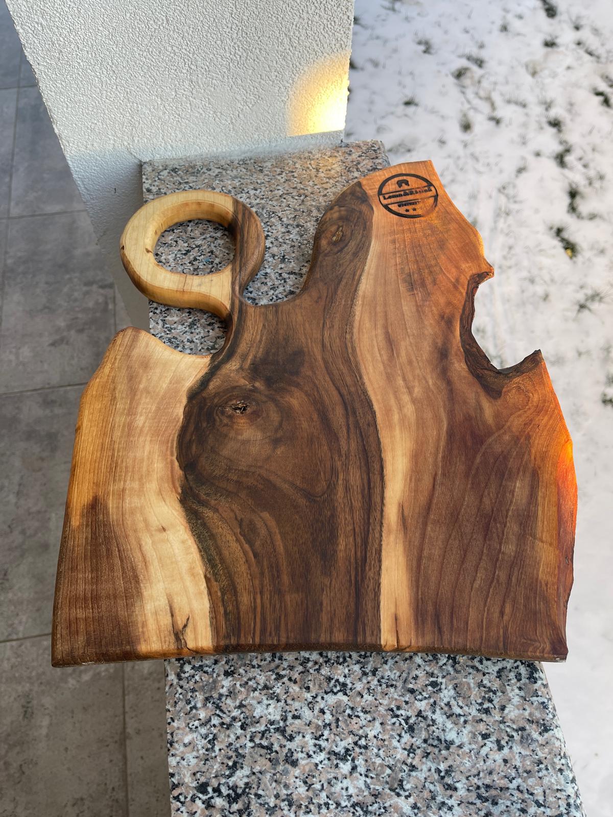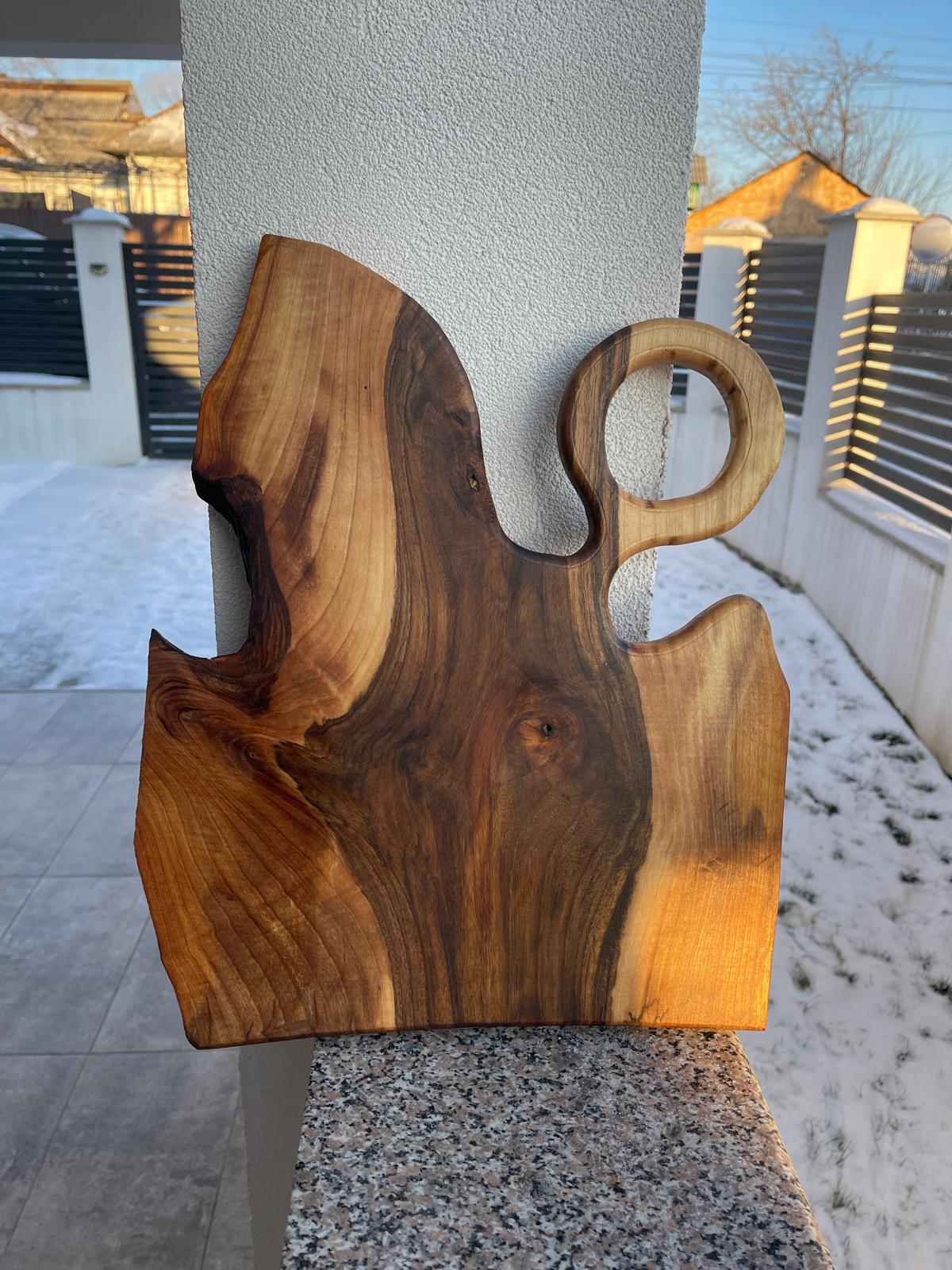 Finisajul cu ulei safe food protejează lemnul și îl face sigur pentru contactul direct cu alimentele, păstrând în același timp textura naturală și culoarea caldă a nucului. Tocătorul este potrivit pentru tăierea legumelor, cărnii sau pâinii, dar poate fi folosit și ca suport decorativ sau platou rustic pentru servire.